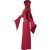 Prästinna maskeraddräkt bestående av klänning med skärp och kort cape med huva, röd och guld.
