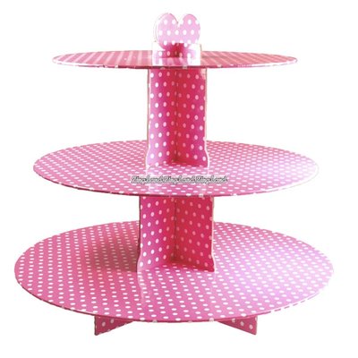 Rosa muffinsställ med vita prickar - 3 våningar