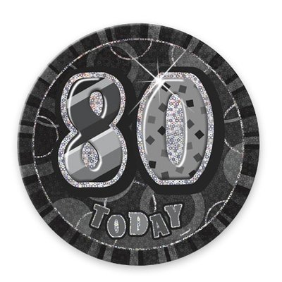 Här är du: Hem > Festartiklar > Kalastillbehör > Födelsedagsknappar > Svart 80-års födelsedagsknapp - 15 cm