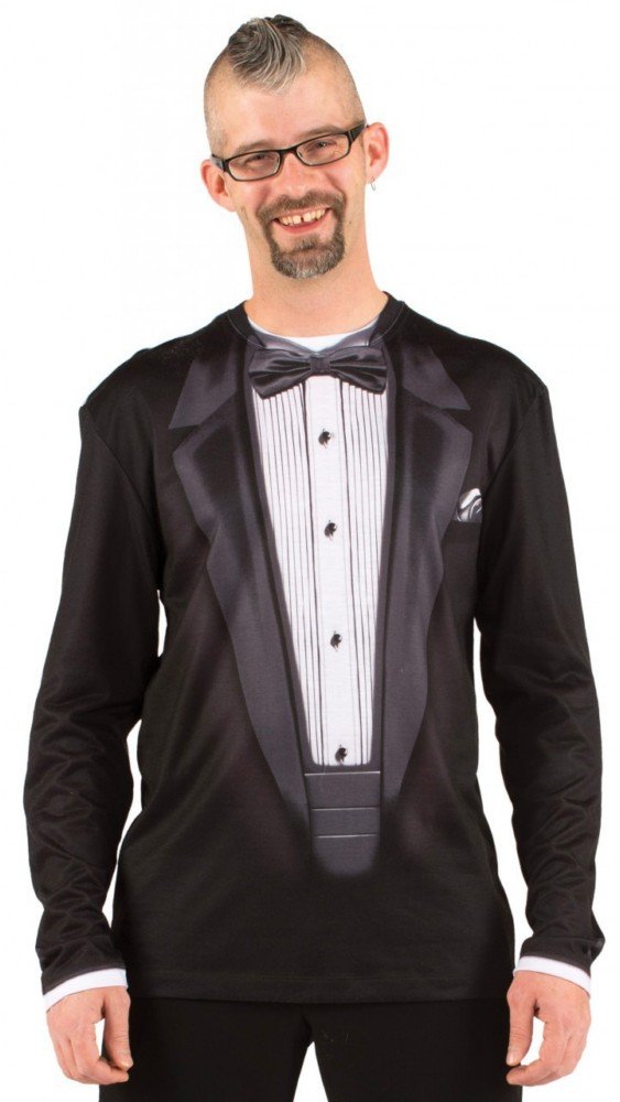 Här är du: Hem > Maskerad > Maskeraddräkter > Sorterat efter kön & storlek > Herrdräkter > Svart smoking t-shirt